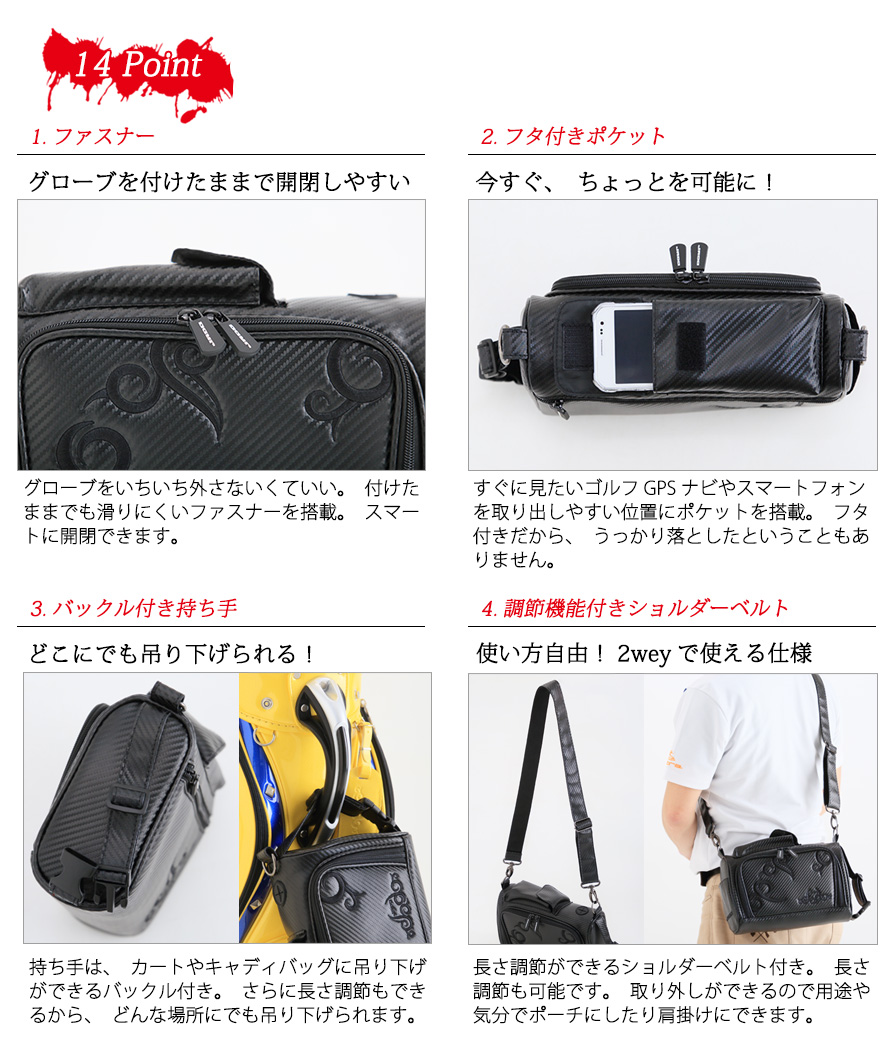 TOP バッグJADO(ジャド) ブランド別JADO(ジャド) JADO ゴルフラウンドポーチ ブラック 価格: ¥12,100 (税込) [ポイント還元 121ポイント~] 販売期間: 数量: 個 在庫: × 在庫 × 返品についての詳細はこちら ◆アメリカンタトゥー柄でゴルフには邪道【JADO】なデザイン。 ◆小さなポーチに14の便利な機能を搭載。 ◆素材は、雨に濡れても使いやすい、合成皮革(カーボンPU) 【商品詳細】 ・名称:Round Pouch ・品番:JGRP0101 ・サイズ:横26.5cm × 縦17.5cm × 幅8.5cm(外寸) ・カラー:ブラック ・素材:合成皮革(カーボンPU) ・生産国:made in china ・定価:11,000円(税抜)