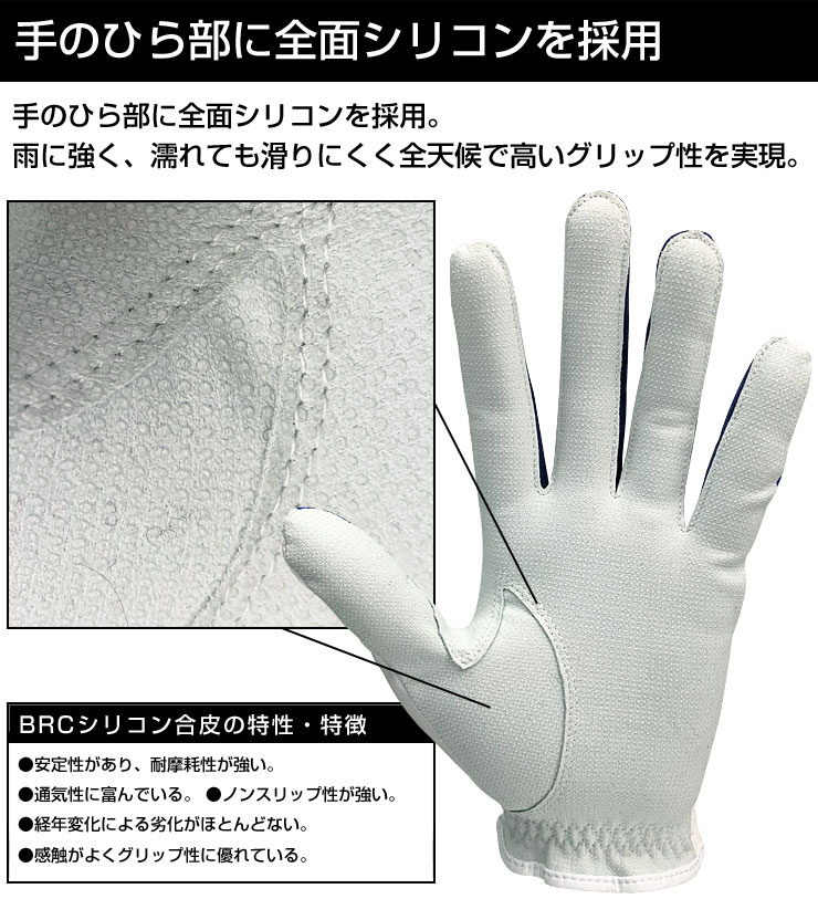 ● 手のひら側にシリコンが前面に入っており、グリップ力をサポート。