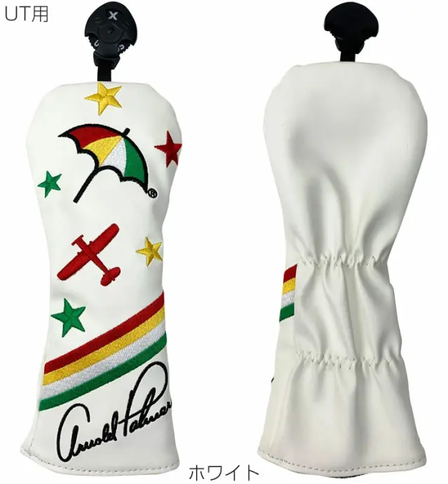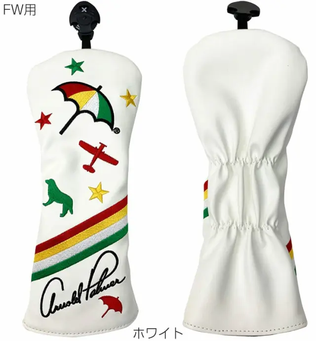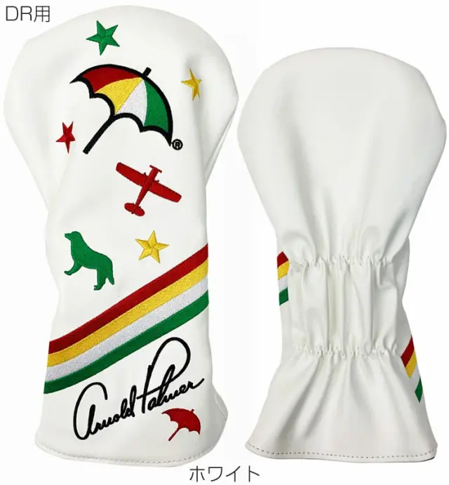 アーノルドパーマーカラーの刺繍を施した色鮮やかなヘッドカバーです。