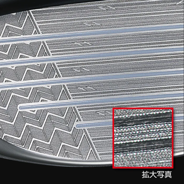 独自のスリップレスバイトミーリングをフェース全面に搭載。滑りやすい局面でもグリップ力が向上し弾道を安定させる。