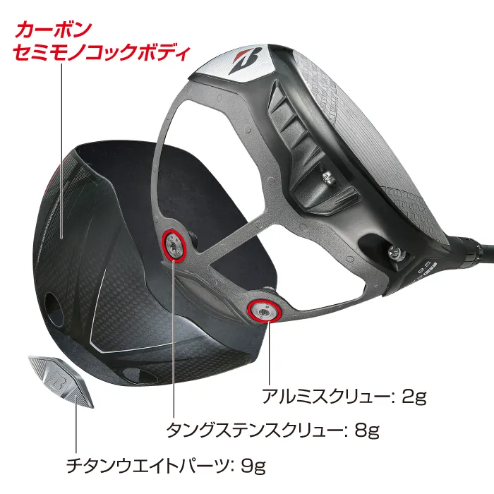 前作よりもカーボンの部分を増やし、バック側にウエイトパーツを配置することで慣性モーメントを高め安定性が向上。