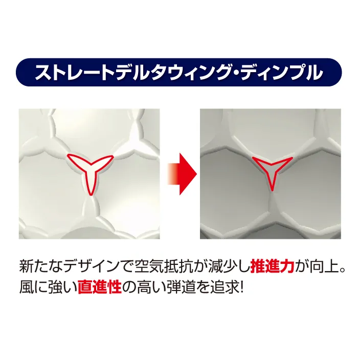 ディンプル形状の見直しを行い、直進性を高め、風を切り裂く強い弾道を追求。