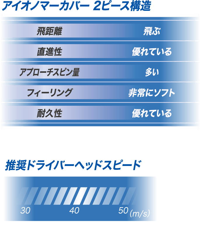 【 2 】やわらかいアイオノマーカバーによりアプローチで優れたスピン性能を発揮!