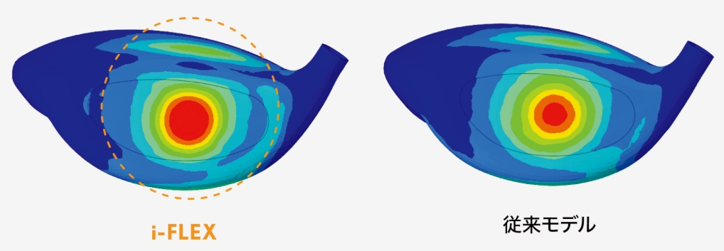 i-FLEXがフェースやヘッドのたわみをさらに大きくさせることでボールスピードアップ