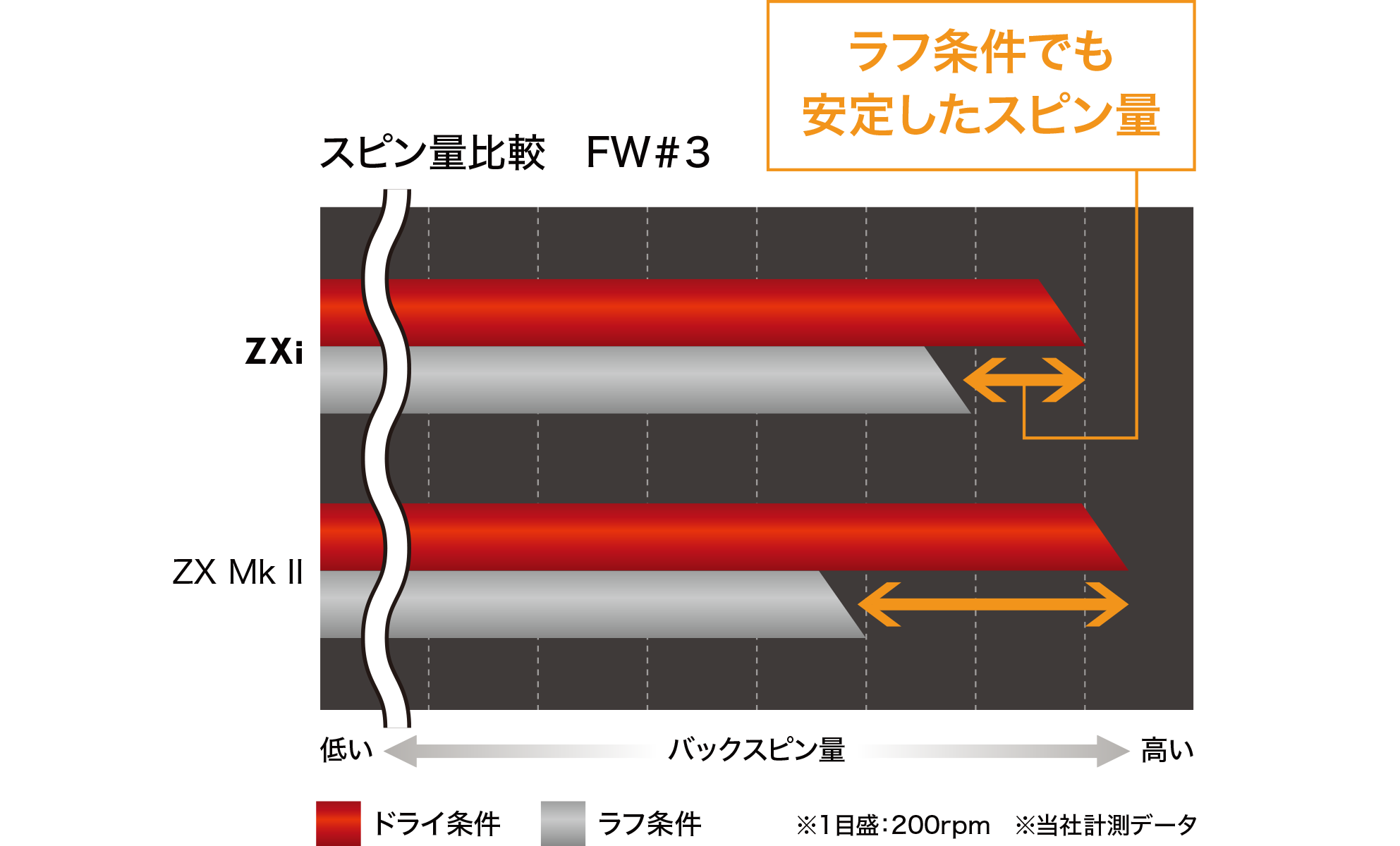 悪条件下※でもフェースレーザーミーリングによりボールが食いつき、しっかりスピンコントロールすることで安定した飛距離性能を実現。