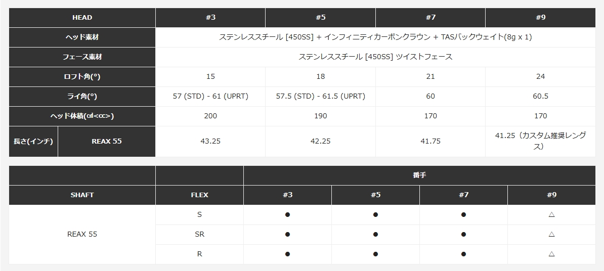 ※上記スペックは#3(15°)の数値です。