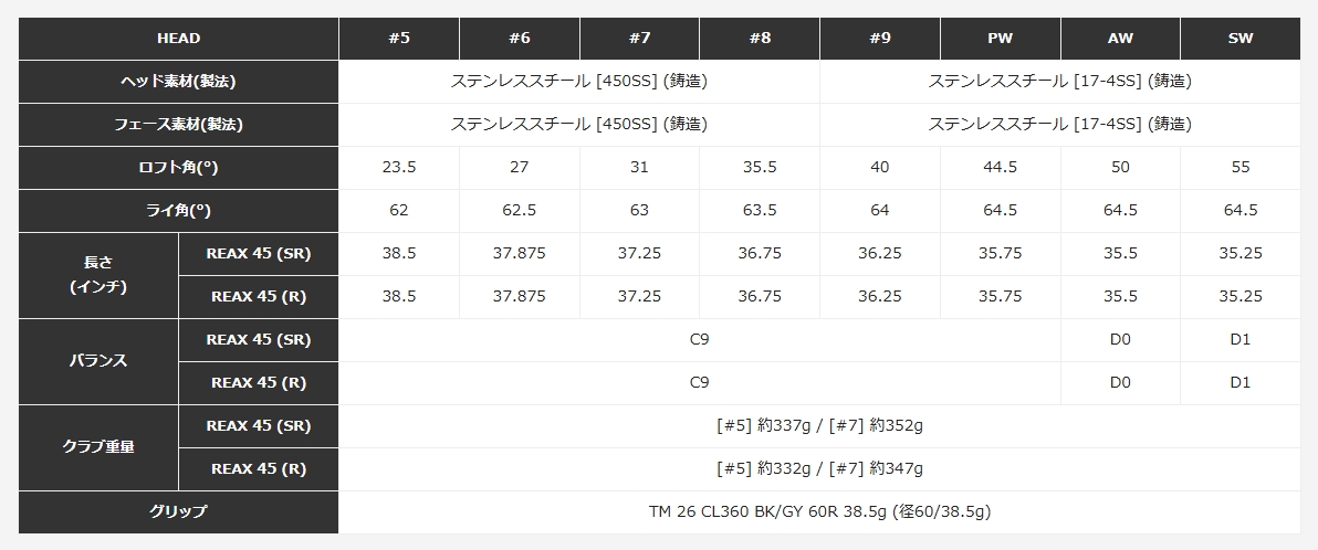 ※上記スペックは#7(31°)の数値です。
