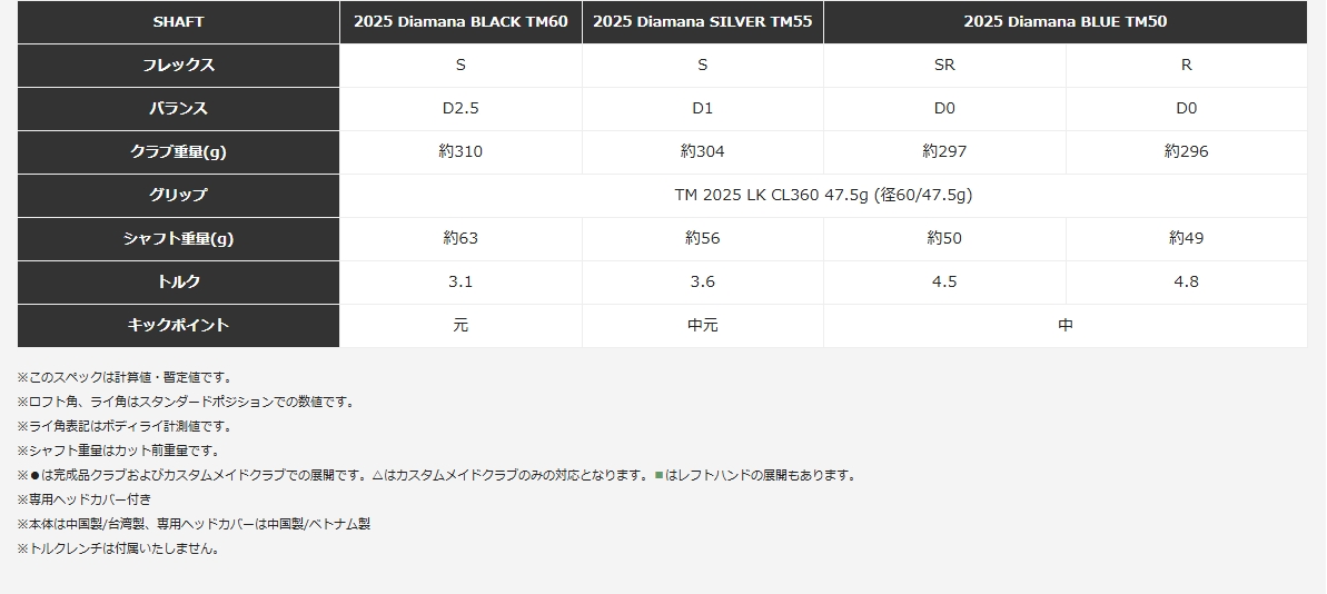 ヘッド素材:チタンフレームボディ [9-1-1 ti] + インフィニティカーボンクラウン + カーボンソール + 特殊強化カーボンコンポジットリング + TASバックウェイト(13g x 1) + TASフロントウェイト(3g x 1)