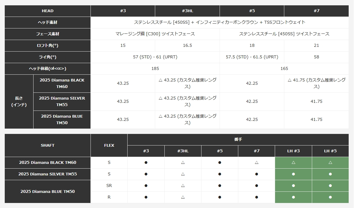 ヘッド素材:ステンレススチール [450SS] + インフィニティカーボンクラウン + TSSフロントウェイト