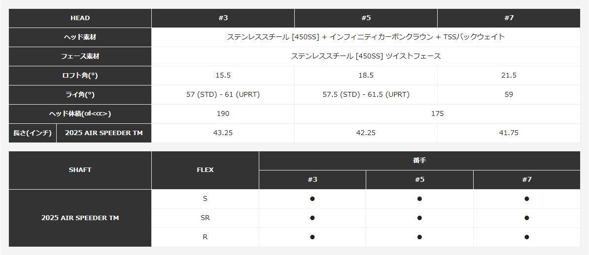 ヘッド素材:ステンレススチール [450SS] + インフィニティカーボンクラウン + TSSバックウェイト