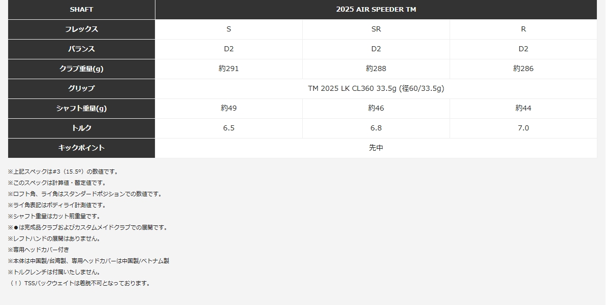 長さ(インチ) 2025 AIR SPEEDER TM :42.25