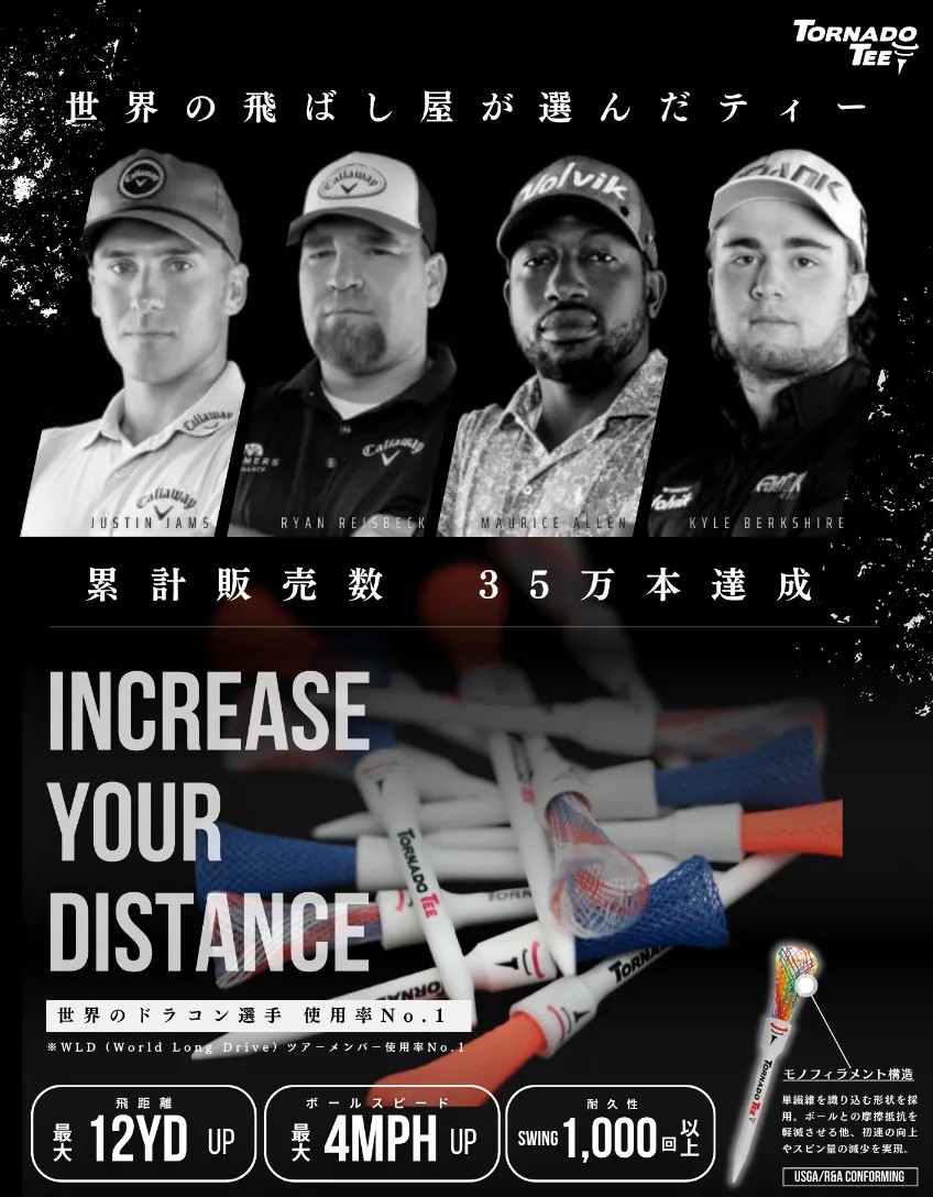 トルネードティーを使用するだけで、ボールスピードが向上(最大4MPH)し、ドライバーショットの飛距離を最大で12ヤード伸ばすことができます。
