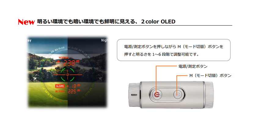 ■明るさ調整可能なREDとGREENの2色のOLEDでより見やすく